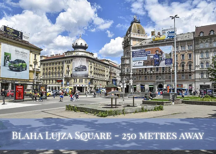 Apartament leży w dzielnicy 07. Erzsébetváros, zaledwie o krok od stacji metra Blaha Lujza ter. Najbliższy przystanek autobusowy Nyar utca oddalony jest od obiektu o 400 metrów, a Baszta Rybacka - w około 2 km. Około 20 min spacerem od obiektu noclegowego znajduje się również Terror Háza.